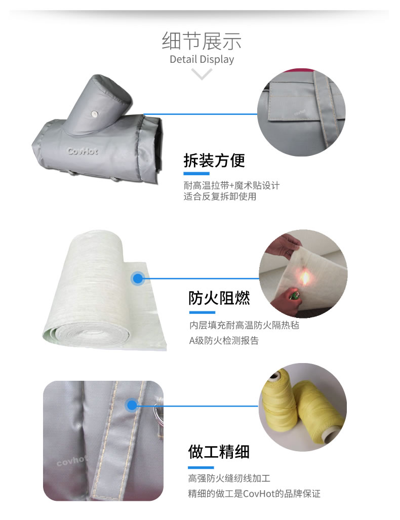 1、絕熱保溫效果好,隔熱層采用新型柔性耐熱纖維隔熱材料,耐溫范圍廣,最高能達到1000℃以上。